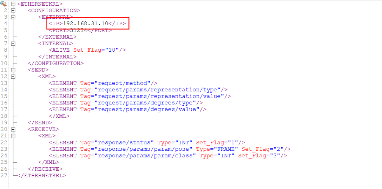 Unpack the downloaded zip file. The folder /config contained therein holds a set of XML configuration files, each defining an API function that can be called in KRL. In each file, adjust the value of the server IP to match the IP of the edge device: