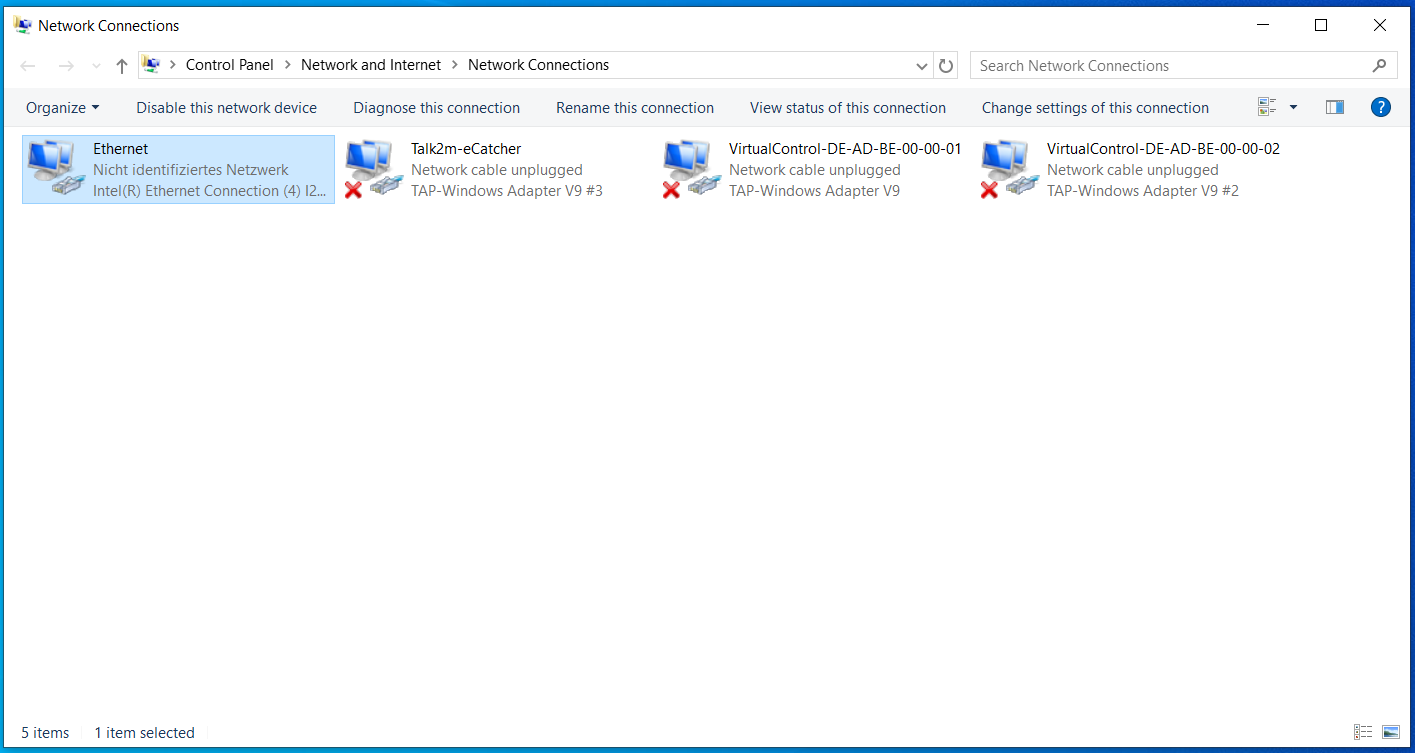 Navigate to Control Panel → Network and Internet → Network Connections: